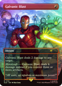 Metalcraft — Galvanic Blast deals 4 damage instead if you control three or more artifacts.