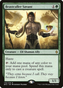 Inicio Magic Beastcaller Savant Version en Español Beastcaller Savant Version en Español₡600 Rare Mana Cost Card TypeCreature Elf Shaman Ally Oracle TextHaste : Add one mana of any color. Spend this mana only to cast a creature spell. Flavor Text”They come because I call. They stay because I listen.” ArtistAnthony Palumbo Agregar al carrito:Copias 1 Beastcaller Savant Version en Español cantidad Añadir al carrito Categoría: Magic Descripción Información adicional Art Normal Magic Tipo de Carta Creature Elf Shaman Ally Color Green Foil Non Foil Mana Cost 2 Product Magic The Gathering Rarity Rare Productos relacionados Gruff Triplets ₡400 Copias 1 Añadir al carrito Wall of Omens ₡250 Copias 2 Añadir al carrito High Alert Ravnica Allegiance ₡250 Copias 1 Añadir al carrito Sundering Stroke ₡250 Copias 1 Añadir al carrito Hardy Outlander ₡250 Copias 1 Añadir al carrito