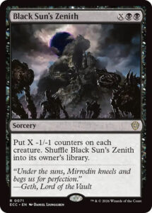 Inicio Magic Black Sun’s Zenith Lorwyn Eclipsed Commander Black Sun’s Zenith Lorwyn Eclipsed Commander₡500 Black Sun’s Zenith SetLorwyn Eclipsed Commander Mana Cost Card TypeSorcery Oracle TextPut X -1/-1 counters on each creature. Shuffle Black Sun’s Zenith into its owner’s library. Flavor Text“Under the suns, Mirrodin kneels and begs us for perfection.” —Geth, Lord of the Vault ArtistDaniel Ljunggren Collector Number071 RarityRare FinishNon-foil Agregar al carrito:Copias 1 Black Sun's Zenith Lorwyn Eclipsed Commander cantidad Añadir al carrito Categoría: Magic Descripción Productos relacionados Caparocti Sunborn ₡250 Copias 1 Añadir al carrito Port Town ₡250 Copias 1 Añadir al carrito Prairie Stream ₡250 Copias 1 Añadir al carrito Haphazard Bombardment ₡250 Copias 1 Añadir al carrito Zagras, Thief of Heartbeats ₡250 Copias 1 Añadir al carrito