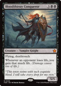 Inicio Magic Bloodthirsty Conqueror Foundations Bloodthirsty Conqueror Foundations₡25 000 Bloodthirsty Conqueror SetFoundations Mana Cost Card TypeCreature Vampire Knight Oracle TextFlying, deathtouch Whenever an opponent loses life, you gain that much life. (Damage causes loss of life.) Flavor Text”This town swims with such exquisite blood. I will take every drop for my own.” ArtistDmitry Burmak Collector Number058 RarityMythic Rare FinishNon-foil Agregar al carrito:Copias 1 Bloodthirsty Conqueror Foundations cantidad Añadir al carrito Categoría: Magic Descripción Productos relacionados Renewed Faith ₡200 Copias 1 Añadir al carrito Dragon Mantle ₡250 Copias 1 Añadir al carrito Gruff Triplets ₡400 Copias 1 Añadir al carrito Caparocti Sunborn ₡250 Copias 1 Añadir al carrito Agent of the Shadow Thieves ₡400 Copias 1 Añadir al carrito