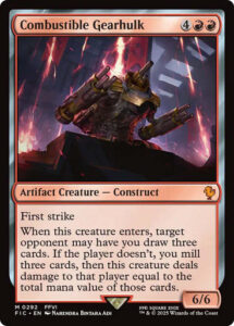 When this creature enters, target opponent may have you draw three cards. If the player doesn’t, you mill three cards, then this creature deals damage to that player equal to the total mana value of those cards.