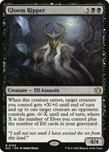 Oracle TextWhen this creature enters, target creature you control gets +X/+0 until end of turn and up to one other target creature gets -0/-X until end of turn, where X is the number of Elves you control plus the number of Elf cards in your graveyard.