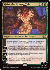 +1: Create a 1/1 black and green Insect creature token, then mill a card. If an Insect card was milled this way, put a loyalty counter on Grist and repeat this process.