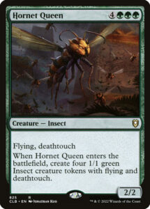 When this creature enters, create four 1/1 green Insect creature tokens with flying and deathtouch.