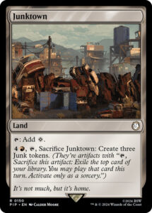 , , Sacrifice this land: Create three Junk tokens. (They’re artifacts with “, Sacrifice this token: Exile the top card of your library. You may play that card this turn. Activate only as a sorcery.”)