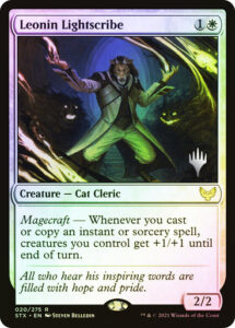 Inicio Magic Leonin Lightscribe Versión en español Leonin Lightscribe Versión en español₡1 400 Promo Mana Cost Card TypeCreature Cat Cleric Oracle TextMagecraft — Whenever you cast or copy an instant or sorcery spell, creatures you control get +1/+1 until end of turn. Flavor TextAll who hear his inspiring words are filled with hope and pride. ArtistSteven Belledin Agregar al carrito:Copias 1 Leonin Lightscribe Versión en español cantidad Añadir al carrito Categoría: Magic Descripción Información adicional Art Normal Color White Foil Promo Foil Magic Set Strixhaven: School of Mages Magic Tipo de Carta Creature Cat Cleric Mana Cost 2 Product Magic The Gathering Rarity Rare Productos relacionados Hatching Plans ₡250 Copias 1 Añadir al carrito High Alert Ravnica Allegiance ₡250 Copias 1 Añadir al carrito Momentary Blink ₡500 Copias 1 Añadir al carrito Renewed Faith ₡200 Copias 1 Añadir al carrito Harmonize ₡250 Copias 1 Añadir al carrito