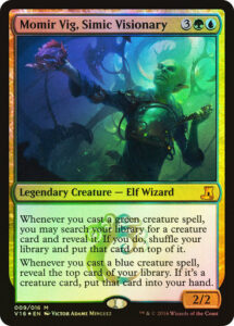 Whenever you cast a blue creature spell, reveal the top card of your library. If it’s a creature card, put that card into your hand.