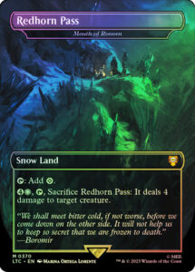 Flavor Text”We shall meet bitter cold, if not worse, before we come down on the other side. It will not help us to keep so secret that we are frozen to death.” —Boromir