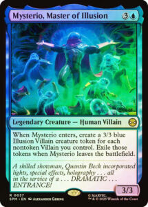 Oracle TextWhen Mysterio enters, create a 3/3 blue Illusion Villain creature token for each nontoken Villain you control. Exile those tokens when Mysterio leaves the battlefield.