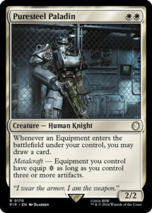 Inicio Magic Puresteel Paladin Fallout Commander Puresteel Paladin Fallout Commander₡1 000 Card NamePuresteel Paladin SetFallout Commander Mana Cost Card TypeCreature Oracle TextWhenever an Equipment you control enters, you may draw a card. Metalcraft — Equipment you control have equip as long as you control three or more artifacts. Flavor Text”I wear the armor. I am the weapon.” ArtistDaarken Collector Number170 RarityRare FinishNon-foil Agregar al carrito:Copias 1 Puresteel Paladin Fallout Commander cantidad Añadir al carrito Categoría: Magic Descripción Productos relacionados Compulsion ₡250 Copias 1 Añadir al carrito Haphazard Bombardment ₡250 Copias 1 Añadir al carrito Abdel Adrian, Gorion’s Ward ₡250 Copias 1 Añadir al carrito Hatching Plans ₡250 Copias 1 Añadir al carrito Dungeon Delver ₡250 Copias 1 Añadir al carrito