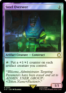 Inicio Magic Steel Overseer Steel Overseer₡1 500 Rare Mana Cost Card TypeArtifact Creature Construct Oracle Text: Put a +1/+1 counter on each artifact creature you control. Flavor Text”Welcome, Administrator. Targeting Parameters have been erased and set to ADMIN_USER_GROUP:: .” ArtistDaarken Agregar al carrito:Copias 1 Steel Overseer cantidad Añadir al carrito Categoría: Magic Descripción Información adicional Art Normal Color Non – Color Foil Foil Magic Set Fallout Commander Magic Tipo de Carta Artifact Creature Construct Mana Cost 2 Product Magic The Gathering Rarity Rare Productos relacionados Wall of Omens ₡250 Copias 2 Añadir al carrito Caparocti Sunborn ₡250 Copias 1 Añadir al carrito Haphazard Bombardment ₡250 Copias 1 Añadir al carrito Sivriss, Nightmare Speaker ₡250 Copias 1 Añadir al carrito Zur the Enchanter ₡750 Copias 1 Añadir al carrito