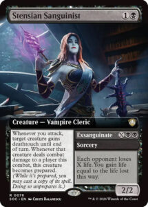Oracle TextWhenever you attack, target creature gains deathtouch until end of turn. Whenever that creature deals combat damage to a player this combat, this creature becomes prepared. (While it’s prepared, you may cast a copy of its spell. Doing so unprepares it.)