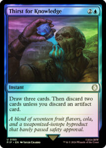 Inicio Magic Thirst for Knowledge Thirst for Knowledge₡500 Uncommon Mana Cost Card TypeInstant Oracle TextDraw three cards. Then discard two cards unless you discard an artifact card. Flavor TextA blend of seventeen fruit flavors, cola, and a weaponized-isotope byproduct that barely passed safety approval. ArtistJavier Charro Agregar al carrito:Copias 1 Thirst for Knowledge cantidad Añadir al carrito Categoría: Magic Descripción Información adicional Art Normal Color Blue Foil Foil Magic Set Fallout Commander Magic Tipo de Carta Instant Mana Cost 3 Product Magic The Gathering Rarity Uncommon Productos relacionados High Alert Ravnica Allegiance ₡250 Copias 1 Añadir al carrito Ian the Reckless ₡400 Copias 1 Añadir al carrito Gruff Triplets ₡400 Copias 1 Añadir al carrito Genesis ₡400 Copias 1 Añadir al carrito Zur the Enchanter ₡750 Copias 1 Añadir al carrito