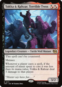 Inicio Magic Tokka & Rahzar, Terrible Twos Tokka & Rahzar, Terrible Twos₡500 Rare Mana Cost Card TypeLegendary Creature Turtle Wolf Mutant Oracle TextThis spell can’t be countered. Menace Whenever a player casts a spell, if the amount of mana spent to cast it was less than its mana value, Tokka & Rahzar deal 3 damage to that player. Flavor Text”Master say have fun . . .” ArtistYuhong Ding Agregar al carrito:Copias 1 Tokka & Rahzar, Terrible Twos cantidad Añadir al carrito Categoría: Magic Descripción Información adicional Art Normal Color Black, Red Foil Non Foil Magic Set Teenage Mutant Ninja Turtles Magic Tipo de Carta Legendary Creature Turtle Wolf Mutant Mana Cost 2 Rarity Rare Productos relacionados Firja, Judge of Valor ₡250 Copias 1 Añadir al carrito Momentary Blink ₡500 Copias 1 Añadir al carrito Gruff Triplets ₡400 Copias 1 Añadir al carrito Nahiri, the Unforgiving Version en Español ₡1 000 Copias 1 Añadir al carrito Dragon Mantle ₡250 Copias 1 Añadir al carrito